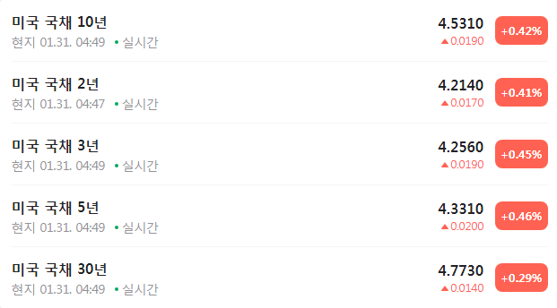 **국채금리(Treasury Yield)**는 정부가 발행하는 국채(Bonds, Treasury)의 수익률을 의미합니다. 일반적으로 국채금리는 만기(단기, 중기, 장기)에 따라 다르며, 시장 금리 및 경제 상황에 따라 변동합니다.